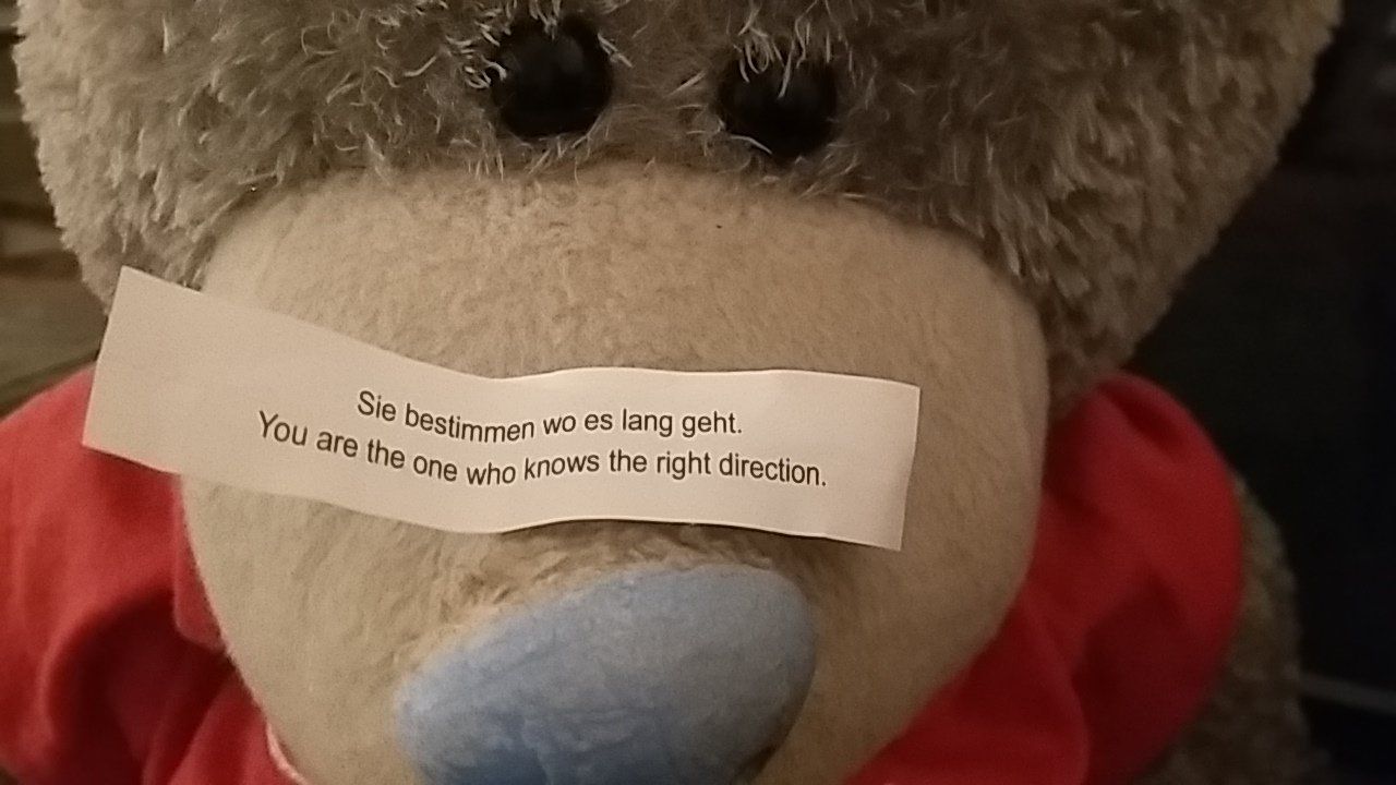 Auch ich fand den Satz spontan spitzenmäßig: Er passt zu mir wie die Faust aufs Auge! Ich steckte die Glücksbotschaft in die Jackentasche und dachte nicht mehr daran. Ein paar Tage später entdeckte ich das Zettelchen. Beim zweiten Lesen, mit etwas Abstand, kam ich ins Grübeln: Mache ich das tatsächlich? Bestimme ich wirklich, wo es langgeht? Was soll mir das Zettelchen sagen? Soll das mein Vorsatz für 2019 sein?